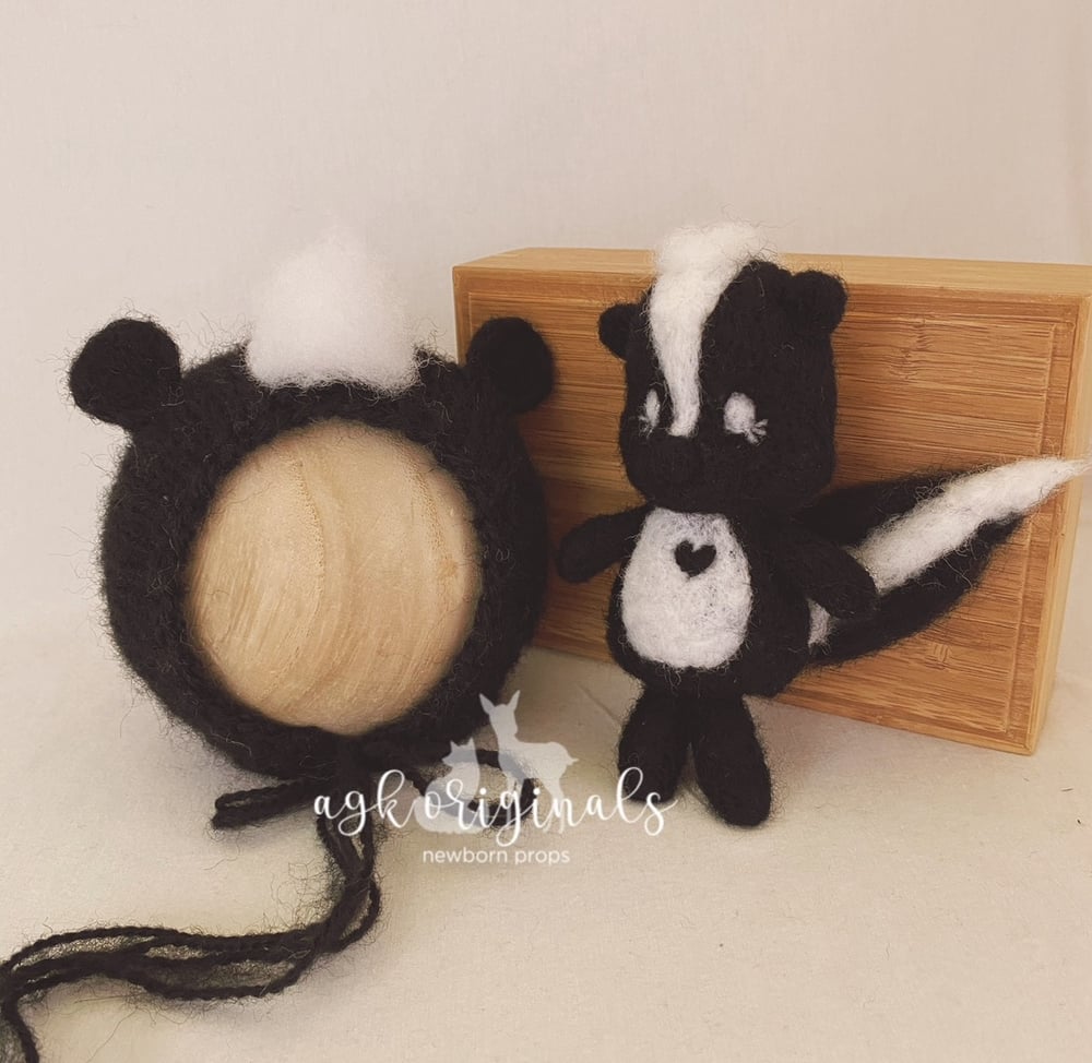 This is a preorder (4-6 weeks). Handfelted skunk lovey, 4-5"tall.