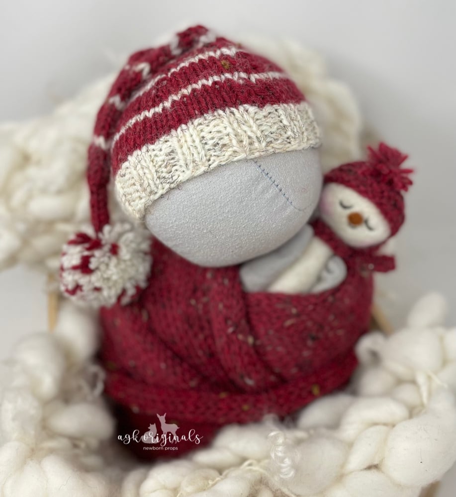 These are ready to ship Handfelted snowman snuggler with knit hat and scarf details. Perfect for tucking into babies tiny hands