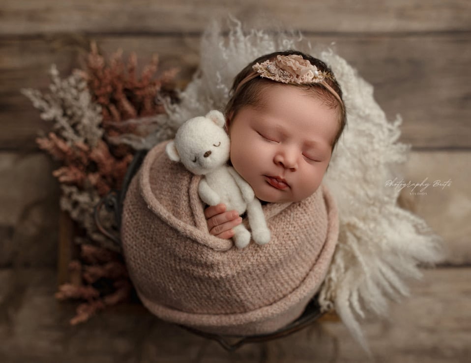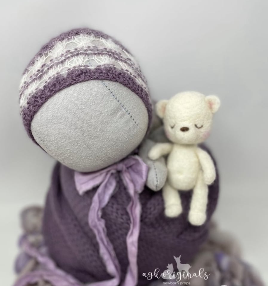 Handknit teddy bonnet and wrap (12"x60) Handfelted teddy lovey